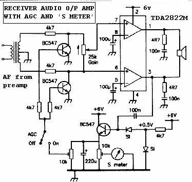 The circuit has AGC and 'S meter' and works from 6v.