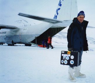 Second picture shows me with my tool case (which also housed the QRP set) standing by the Herc. waiting for the ride back to Chile from Antarctica temp -19c.
