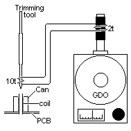 Use the pot to set the meter to (about) mid-scale and position the GDO coil beside the tuned circuit you want to test. "Sweep" the GDO tuning until you see a "dip" and read the frequency from the tuning scale. It can be useful to set the frequency to that which you want, then adjust the tuned circuit under test for a dip. In this way it is possible to align a QRP TX or RX before power is applied.