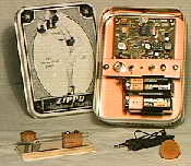 Enclosed is a shot of the 49er I just got done putting together. I wanted more room to play with so I found a display can that a Zippo lighter my wife gave me came in and it fit the bill perfectly. I decided with all this extra room to go with two 9v batteries do I can run a bit longer, and have the extra life if I decide to add a sidetone ckt in the future.